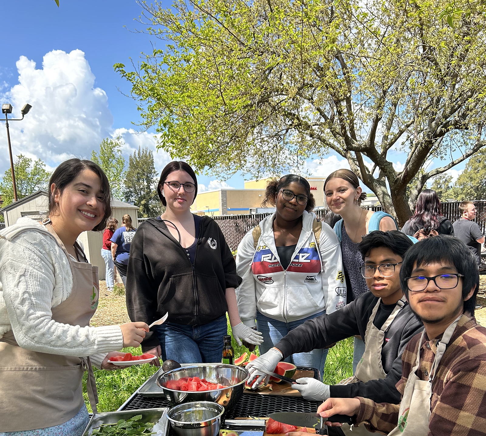 Youth Wellness interns at Fairfield High craft fresh salads using locally grown watermelon